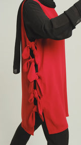 Womens vest styling reaches new heights with the Bow Tie Vest — a long, tailored silhouette crafted in soft TR fabric for all-day ease. Available in Green, Black, Red, and Beige, this design features subtle side bows that add a refined accent to its clean lines. Both stylish and functional, it's a standout among our womens vest offerings, delivering elegant layering without compromising comfort. Discover similar elevated options throughout our tops, pants, and dress collection.