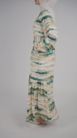 Celebrating the season with vibrant charm, the Prismatic Bloom Dress adds joyful color and fluid ease to our collection of modest dresses. Tailored in crepe chiffon with a breezy maxi dress silhouette, it features a playful summer print across four unique variations—BeigeXGreen, GreenXPink, LimeXNavy, and Grey. With its long sleeves and shirt-dress shape, this piece offers breathable coverage that transitions seamlessly from daytime gatherings to festive evenings. Equal parts fun and refined, it's a standout choice for warm-weather elegance in a modern modest dress. Explore more amazing dresses in our Dress Collection, or check out the latest outfits in our Spring-Summer Collection.