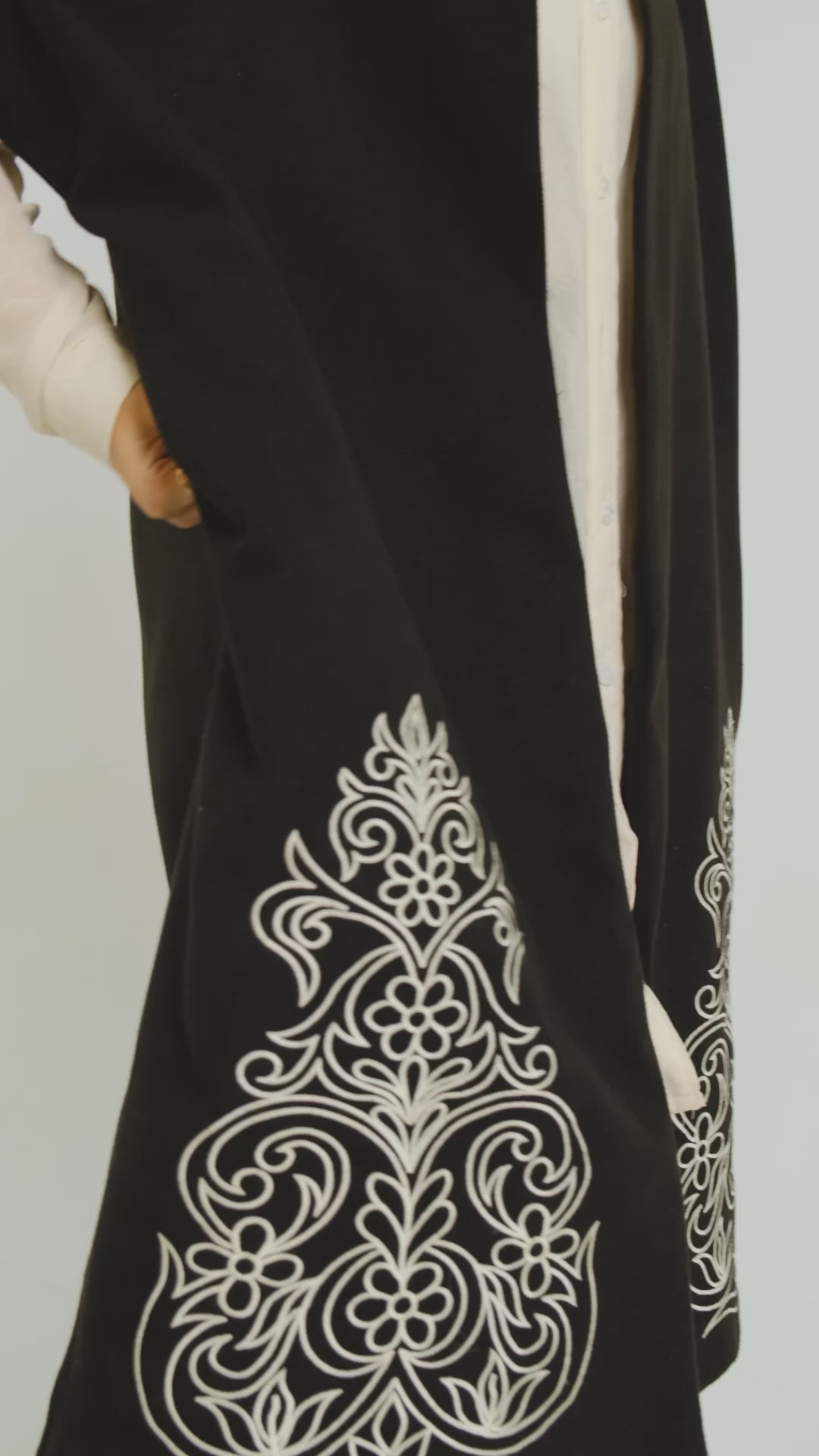 Sophistication takes a seasonal turn with the Royal Embroidered Wool Poncho, a standout in our curated line of womens poncho styles. Tailored from soft wool and designed in a free-size silhouette, it features ornate embroidery that brings warmth and refinement to colder days. Available in black and grey, this piece layers effortlessly over winter staples, offering both comfort and modest elegance. Blending utility with quiet glamour, it holds its place among timeless ponchos for women crafted for festive evenings and crisp mornings alike. Explore related styles in our Sets Collection, or check out the latest outfits in our Autumn-Winter Collection.